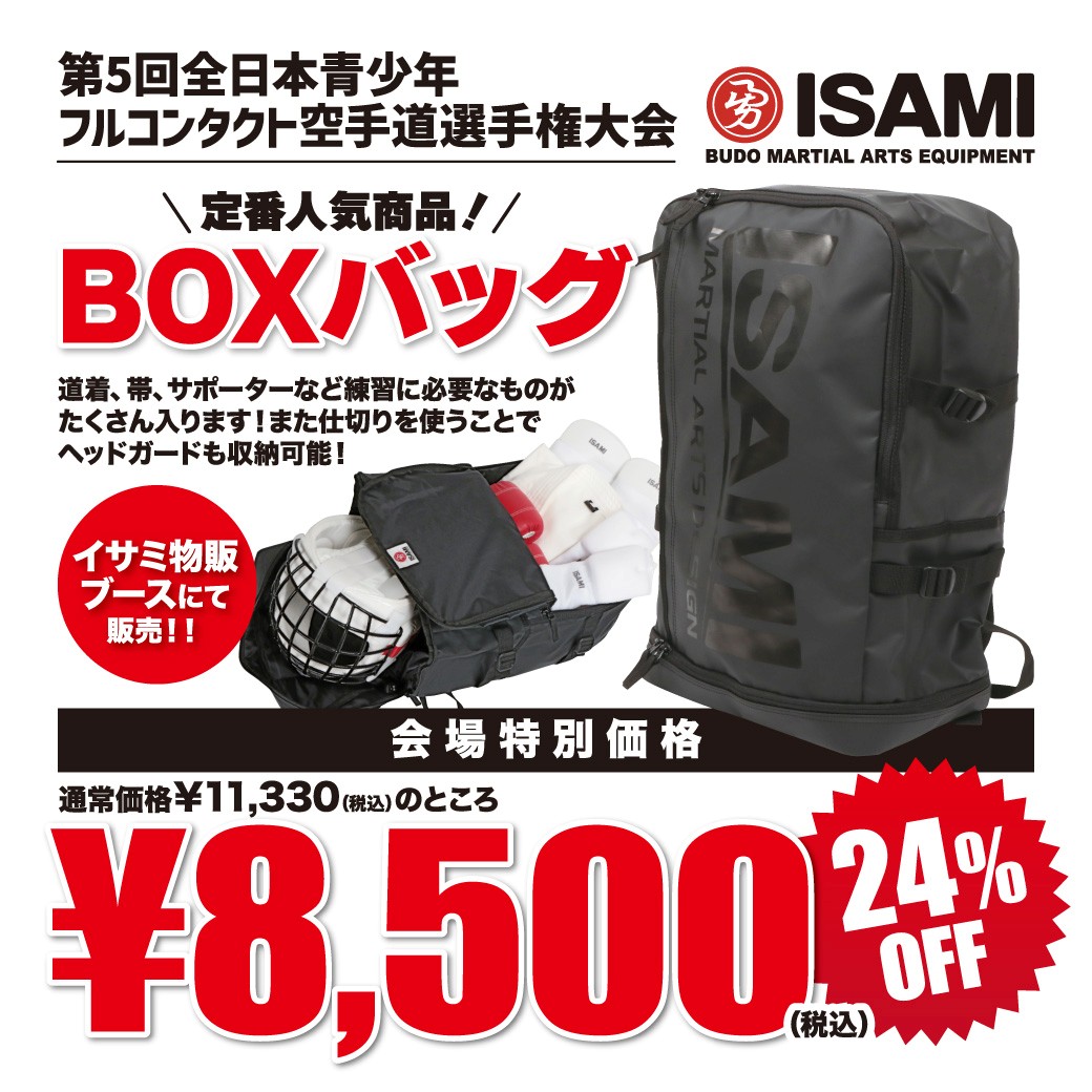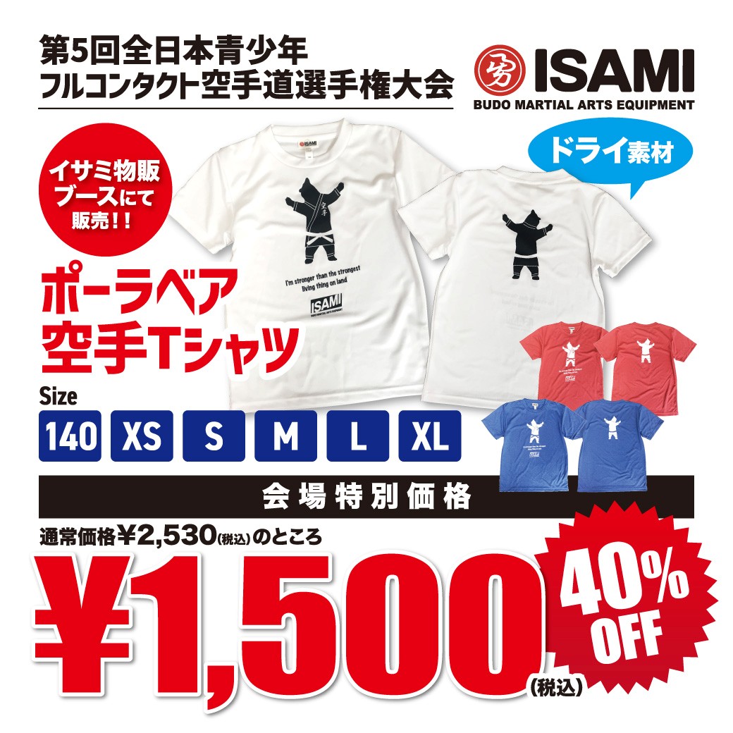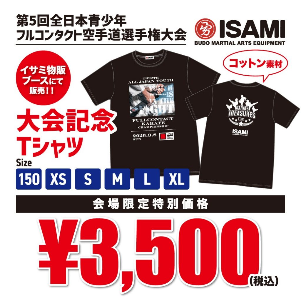 2026年3月5日 / 最終更新日 : 2026年3月11日 webmaster ニュース 【第5回全日本青少年ブース】イサミ様!注目商品ラインナップ! 大会記念Tシャツ以外にも、公式防具をはじめ、選手・観客の皆さまに喜ばれる多彩な空手グッズを取り揃えております。 いずれも数量限定ですので、ご希望の方はぜひお早めにイサミ特設ブースへお立ち寄りください。 この機会に、ぜひ会場でチェックしてみてください! 第5回全日本青少年フルコンタクト空手道選手権大会はスポーツ振興くじ助成事業です。 Follow me! FacebooktwitterHatenaPocket